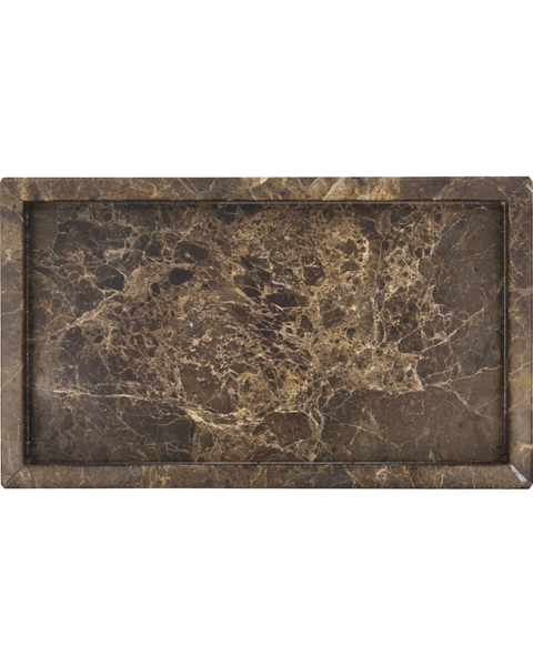Marmor er et naturmateriale, der dannes gennem årtusinder, og derfor er hver bakke udstyret med sit eget unikke udtryk. De brune nuancer spænder fra dybe, varme toner til lysere, bløde skygger, som skaber et levende og organisk farvespil. De naturlige årer i stenen giver et eksklusivt og luksuriøst look, der gør bakken til et fremhævende designelement på badeværelsesbordet, i entreen, på natbordet eller i stuen.