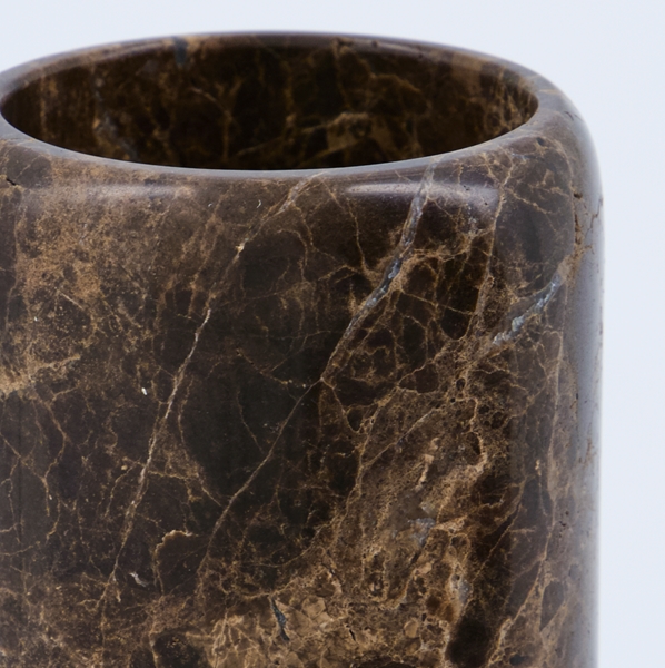 Opbevaringsbæger i brun poleret marmor – Eksklusiv elegance til badeværelse, kontor og boligindretning