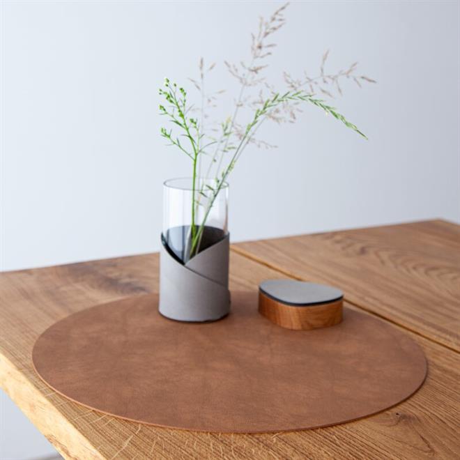 Dækkeserviet cirkel i recycle læder Nupo/natur fra LindDNA