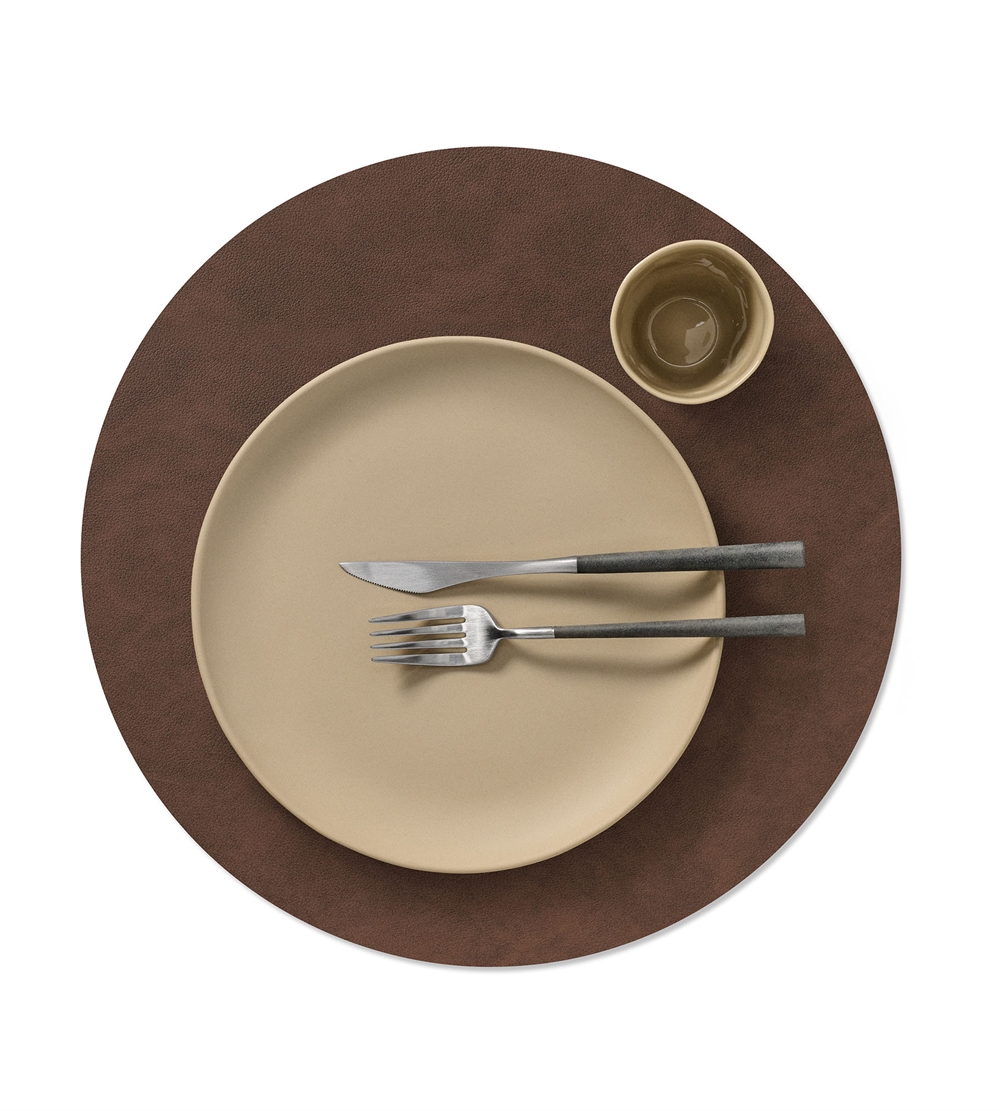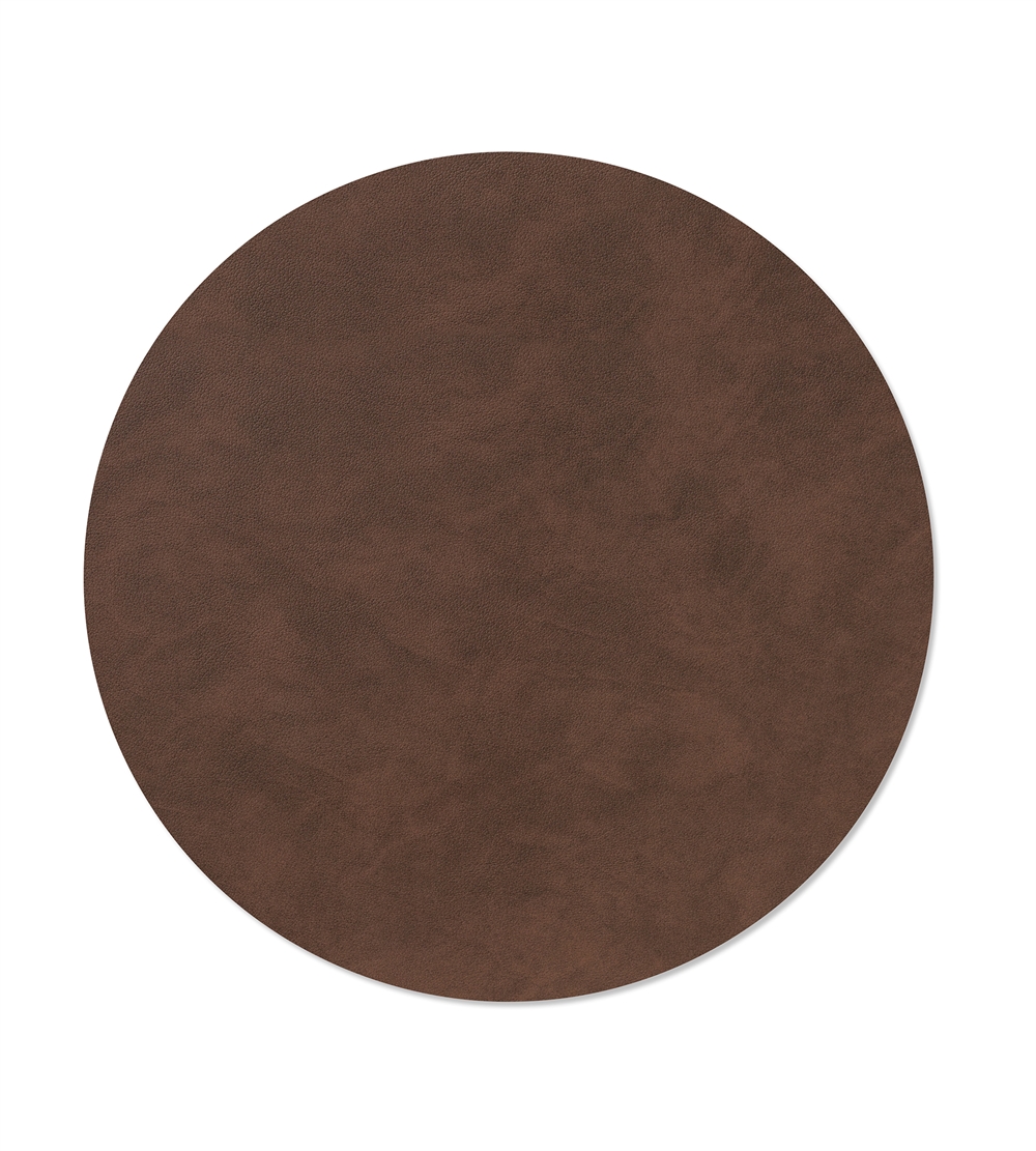 Opgrader din borddækning med en stilren og miljøvenlig løsning: 'Dækkeserviet Cirkel Ø40 cm i recycle læder fra LindDNA'. Disse moderne og elegante dækkeservietter er både funktionelle og dekorative, ideelle til enhver lejlighed. Skabt af LindDNA, kendt for deres innovative og bæredygtige design, er disse dækkeservietter fremstillet af 80% genbrugslæder og 20% naturgummi, hvilket gør dem både slidstærke og lette at vedligeholde.