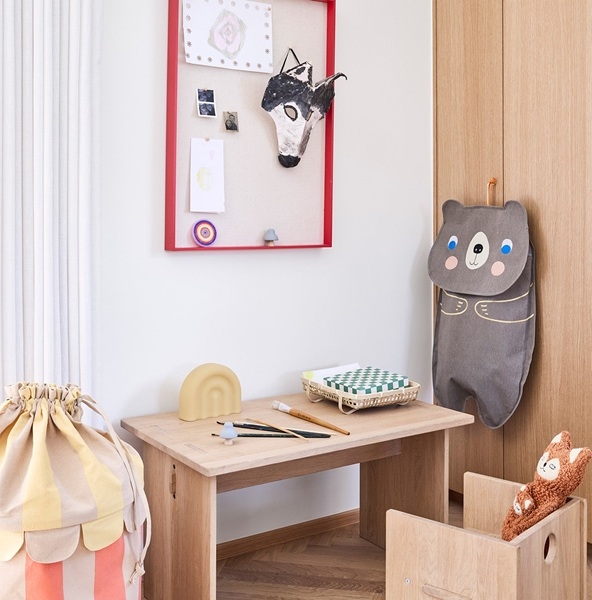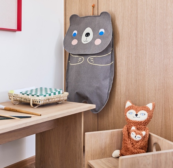 Darling Bear vægopbevaring er en legende og praktisk tilføjelse til ethvert børneværelse. Den er lavet af bomuld med en PE-belagt bagside for ekstra holdbarhed og er perfekt til opbevaring af små legetøj, bøger eller hverdagsting.