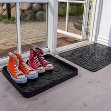 Dørmåtten er fremstillet i 60 % genbrugsgummi, som både gør den miljøvenlig og utrolig slidstærk. Materialet giver en tung og stabil måtte, der ligger solidt på gulvet – uanset om den placeres indenfor eller udenfor. Den høje vægt betyder, at den ikke skrider rundt, som mange lettere dørmåtter ofte gør. Du slipper for at rette på den hele tiden, og du får et pænt og fast underlag, hver gang du træder indenfor.