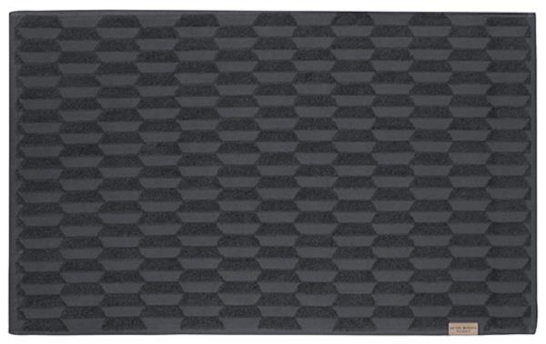 Opgrader dit badeværelse med elegance og funktionalitet med 'Geo bademåtte i antracit 50x80 cm fra Mette Ditmer'. Denne stilfulde bademåtte er ikke kun en fryd for øjet med sit moderne grafiske mønster, der leger med lys og skygge, men den er også praktisk designet til at tage sig af dit behov for komfort og hygiejne efter et bad eller en bruser.