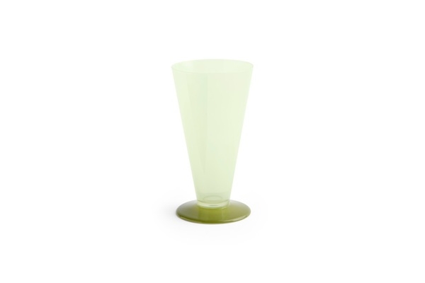 Vasen er fremstillet af sodakalkglas og består af 80 % nyt glas og 20 % genanvendt glas, hvilket giver en flot klarhed kombineret med solid kvalitet. Den håndmalede, tofarvede tone-i-tone finish tilfører dybde og karakter, samtidig med at farverne forbliver afdæmpede og harmoniske. Hver vase får sit eget unikke udtryk, hvilket gør den til mere end blot et funktionelt objekt – den bliver en del af indretningen.