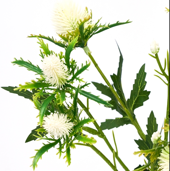 Mandstroen er kendt for sit karakteristiske udseende, og i denne kunstige version er plantens særlige form gengivet med stor præcision. De spidse blomsterhoveder skaber struktur og dybde i buketter og vaser og gør planten ideel som blikfang – enten alene eller i kombination med andre kunstige blomster og grene.
