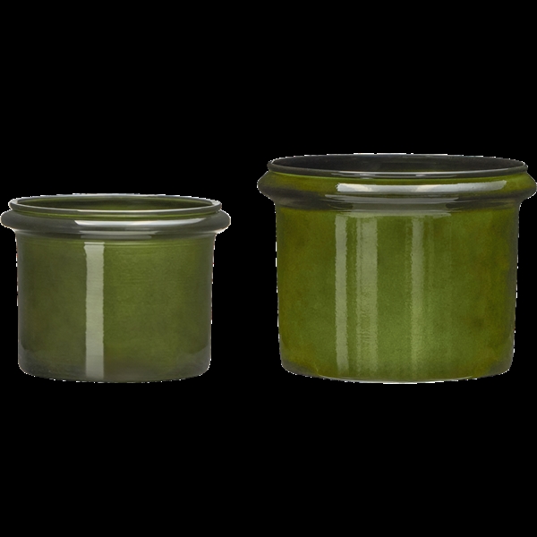 Sæt af 2 urtepotter i jern – mørkegrøn emalje