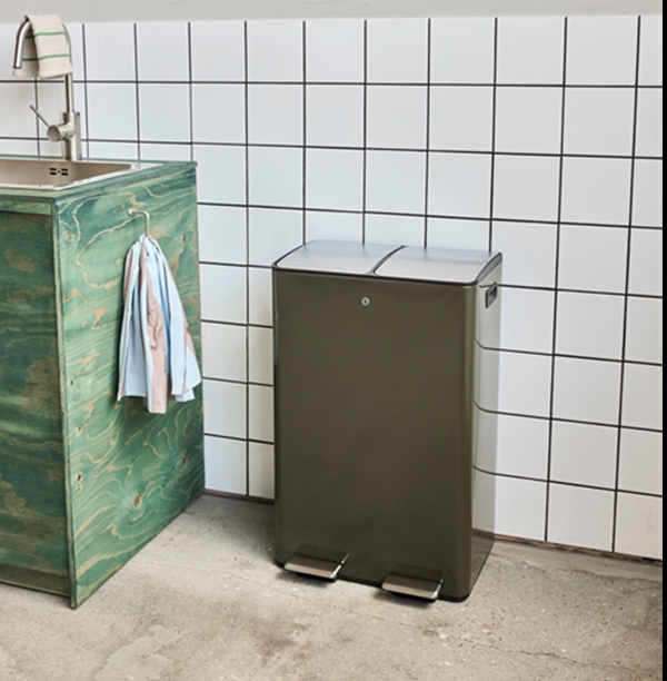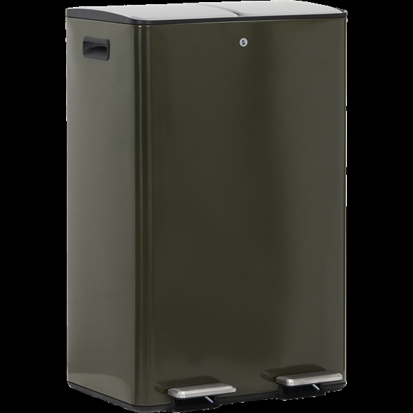 Den dybe grønne farve tilfører varme og karakter og fungerer som et stilfuldt alternativ til klassiske sorte eller grå skraldespande. Farven harmonerer smukt med både lyse og mørke interiører og understøtter den nordiske designtradition, hvor naturinspirerede nuancer skaber balance og ro i hjemmet.