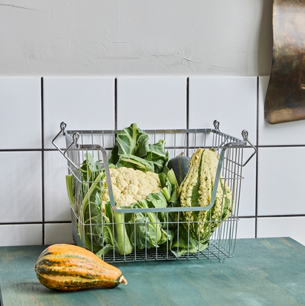 Med sine kompakte dimensioner – 26,7 cm i længden, 26,7 cm i bredden og 20,3 cm i højden – er trådkurven nem at placere på hylder, i reoler og på borde uden at virke dominerende. Samtidig er den rummelig nok til at samle og organisere hverdagens småting på en overskuelig måde.
