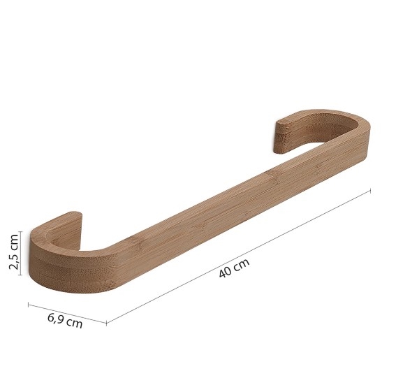 Med målene 2,5x6,9x40 cm tilbyder denne håndklædeholder både funktionalitet og et diskret, stilfuldt udtryk. Fremstillet af robust bambus, garanterer den både holdbarhed og et æstetisk tiltalende udseende.