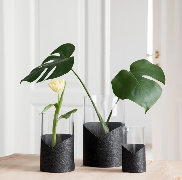 Med FOLD VASE fra LIND DNA får du mere end en almindelig vase – du får et gennemtænkt designobjekt, der kombinerer glas, recycled læder og nordisk minimalisme i et stilrent og moderne udtryk.