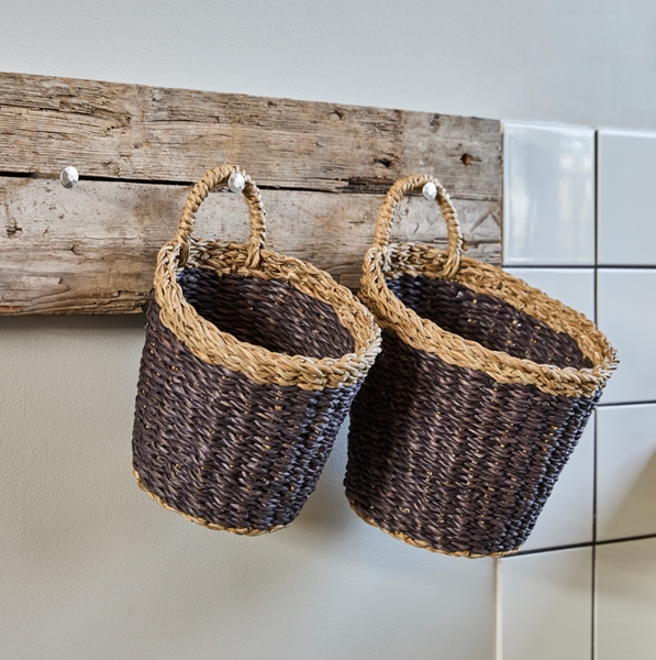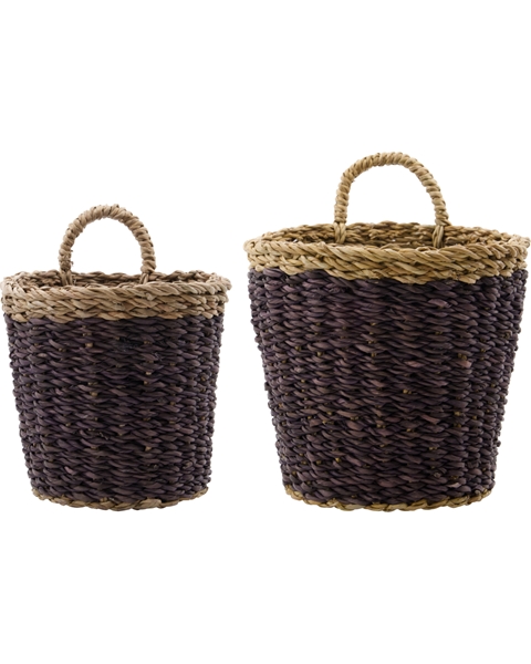 Dette sæt består af to kurve i forskellige størrelser, hvilket gør dem yderst praktiske til opbevaring i både stuen og entréen. Den store kurv måler 24 cm i højden og 22 cm i diameter, mens den lille kurv er 20 cm høj og har en diameter på 20 cm. Deres størrelser og tidløse design gør dem ideelle til at opbevare alt fra tæpper og bøger til nøgler og småtilbehør.