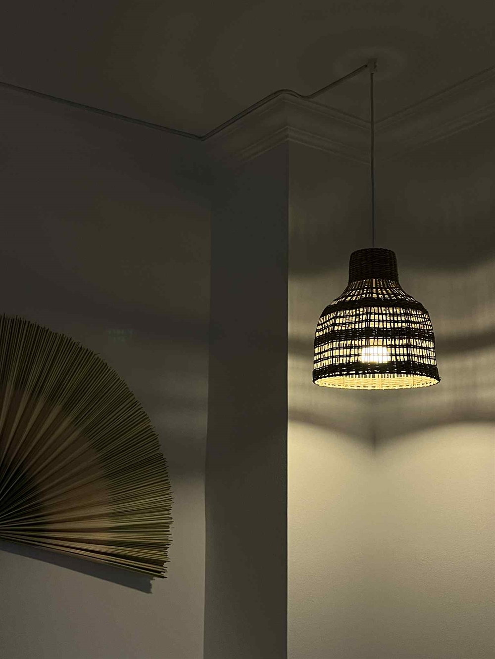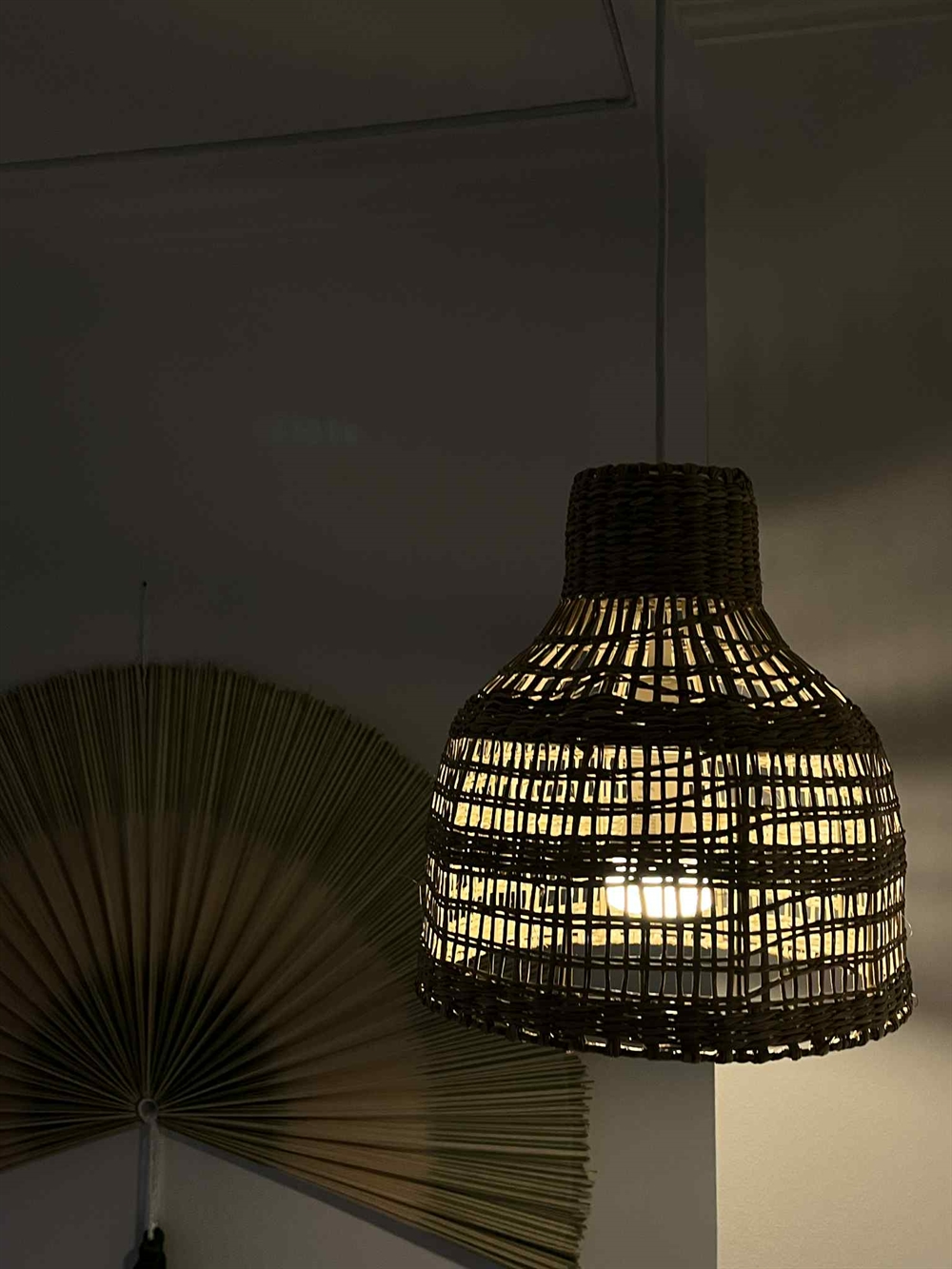 Denne søgræslampe er et smukt eksempel på skandinavisk indretning, hvor naturlige materialer og enkle linjer går hånd i hånd. Lampens slanke og moderne form tilfører rummet et strejf af elegance og luftighed, der passer perfekt ind i både minimalistiske hjem og mere boheme-inspirerede omgivelser.