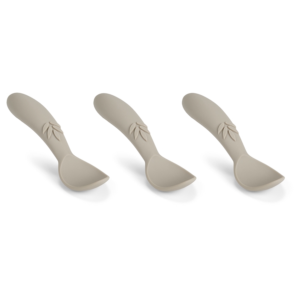 Tre silikone skeer fra nuuroo. Ella babyske er en fleksibel silikone ske lavet af LFGB certificeret silikone uden skadelige kemikalier. Silikonen er blød og kan bøjes uden at gå i stykker. Skeens design og form gør det lettere for små børn at holde og spise fra skeen.