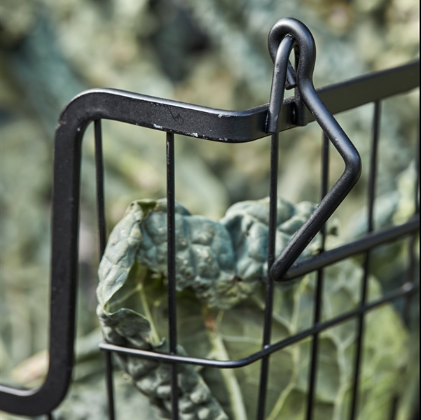 Den matte, sorte farve gør metalkurven ekstremt nem at kombinere med andre materialer som træ, keramik og tekstiler. Brug den i stuen til plaider, magasiner eller fjernbetjeninger, på kontoret til dokumenter og mapper, eller i køkkenet til kogebøger og køkkentilbehør. Kurven er udelukkende beregnet til indendørs brug, hvor den virkelig kommer til sin ret som en del af din personlige indretning.