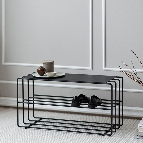 Let at vedligeholde: Overfladen på skoreolen er nem at rengøre og vedligeholde, hvilket sikrer, at den forbliver smuk og funktionel i mange år. En hurtig aftørring med en fugtig klud er alt, der skal til for at holde den ser ny og frisk ud.