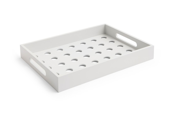 Terrazza Dot-bakken er et smukt eksempel på, hvordan gennemtænkt design og praktisk funktion kan gå hånd i hånd. Med sin karakteristiske perforerede bund, høje sider og udskårne håndtag fremstår bakken både let, moderne og yderst anvendelig. Det rene formsprog gør den til en naturlig del af det nordiske hjem, hvor æstetik, kvalitet og funktionalitet vægtes højt.