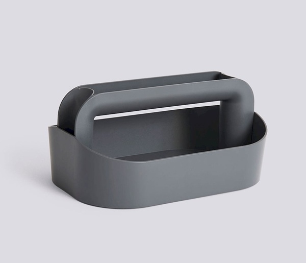 Lysegrå Tool Box til opbevaring fra HAY. Tool Box er en funktionel rummelig opbevaringskasse, hvor der både er rum på siderne og i toppen af håndtaget. Den kan anvendes på kontoret, køkken, badeværelse eller børneværelset til nips og anden opbevaring.