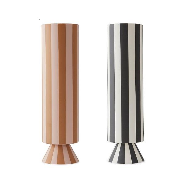 Hver Toppu vase er omhyggeligt håndlavet i 100% højkvalitets keramik, hvilket sikrer, at hver eneste vase ikke kun er smuk, men også unik. Med sine rene linjer og det karakteristiske stribede mønster er denne vase perfekt til at fremvise friske blomster, grene eller som en selvstændig dekorativ genstand i dit hjem.
