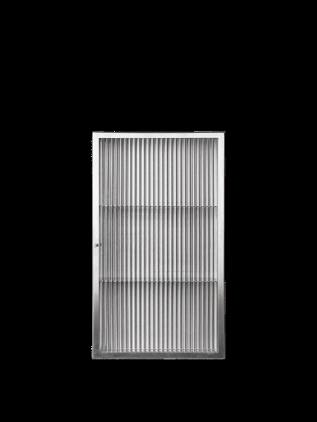 Fremstillet i høj kvalitet børstet rustfrit stål, har Haze vægskabet en flot finish, der tilfører et moderne og industrielt udtryk til dit interiør. Riflet glas på lågerne tilføjer en interessant tekstur, der elegant spiller med lyset og skaber en diskret refleksion, som forstærker rummets æstetik.
